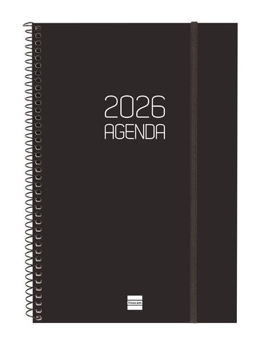 AGENDA ANUAL (2026) FINOCAM ESPIRAL OPAQUE ESPIRAL tapa PP con GOMA E11 165x242 S/V NEGRO